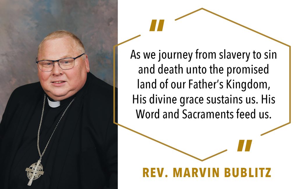 As we journey from slavery to sin and death unto the promised land of our Father’s Kingdom, His divine grace sustains us. His Word and Sacraments feed us.