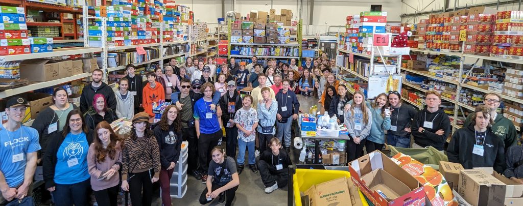 For the servant event, youth and congregations were asked to collect donations for the Leduc & District Food Bank prior to the retreat. During the retreat, they brought their donations to the warehouse, received a tour, and learned more about the work the food bank does. The group collected a total of 696 lbs of goods, which the food bank estimates to cost about $3.50/lb, for a total of $2,436.