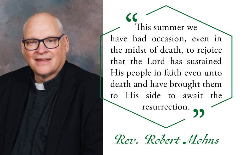 This summer we have had occasion, even in the midst of death, to rejoice that the Lord has sustained His people in faith even unto death and have brought them to His side to await the resurrection.